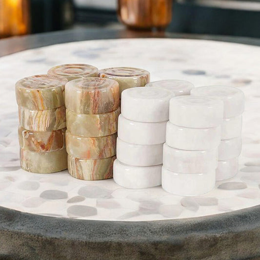 Checkers Figures - White and Travertine